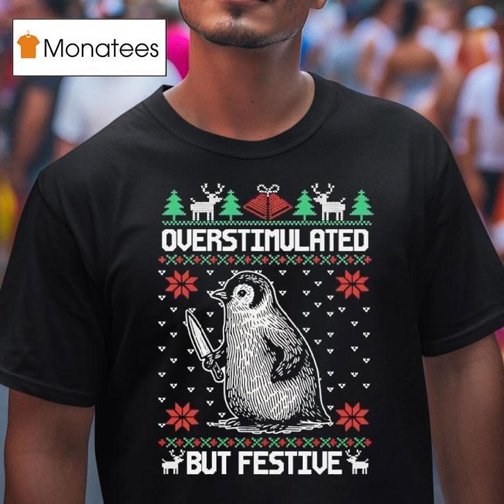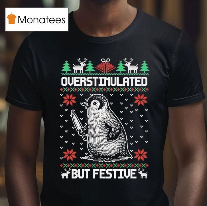 Instant style upgrade with Penguin Holidng Knife Overstimulated But Festive Christmas Ugly Shirt, ‘Tis the season to be jolly, but for this penguin, the holiday spirit has gone a bit overboard. Holding a knife in its flippers and wearing a tacky Christmas ugly shirt, this little bird is clearly overstimulated by all the festivities. Let the quirky Christmas shenanigans begin!