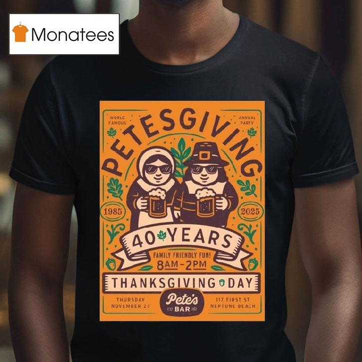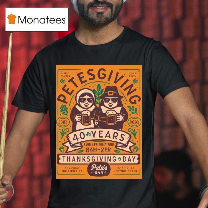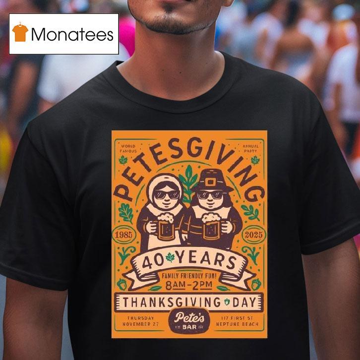 Wardrobe essential, always with Petesgiving 40 Years Family Friendly Fun Thanksgiving Day November 27 2025 Shirt, celebrate 40 years of family fun with our limited edition “Petesgiving” Thanksgiving Day shirt! Embrace the holiday spirit with this unique design, available on November 27, 2025. Perfect for all ages, it’s the perfect addition to your Thanksgiving traditions. Order yours now and make Petesgiving a part of your family’s celebration!