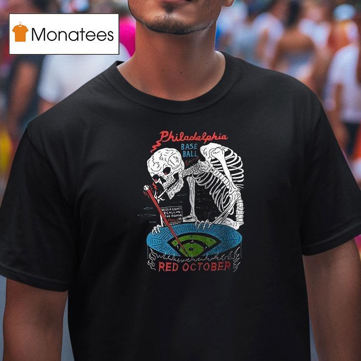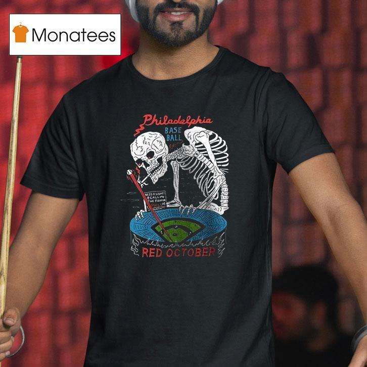 Your fashion statement, redefined with Philadelphia Phillies Baseball Red October Need A Light Call The Fightin Phils Skeleton Shirt, with the Philadelphia Phillies dominating the field this Red October, fans are eagerly preparing to cheer on their beloved Fightin Phils. And what better way to light up the stands than with a stylish skeleton shirt? Show your support and call the Fightin Phils to victory!