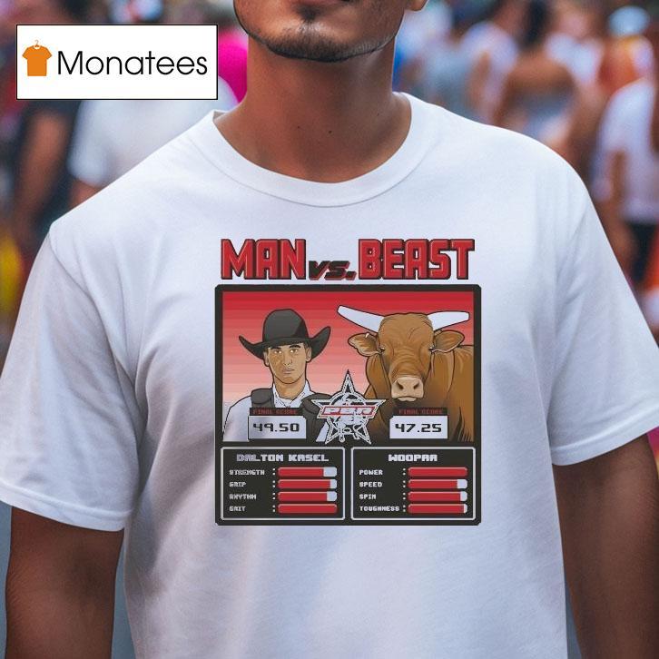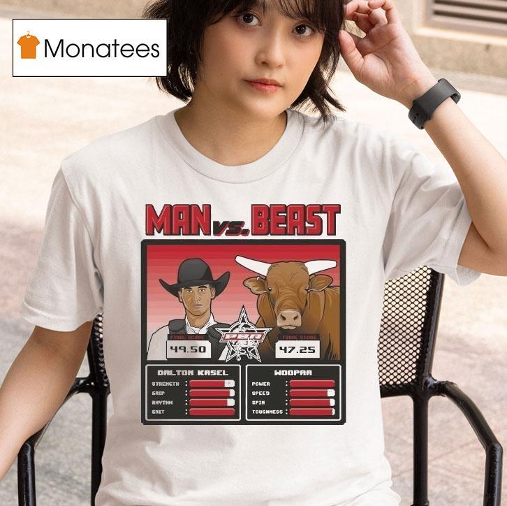 Your style, your tee with Professional Bull Riders Man Vs Beast Dalton Kasel Vs Woopaa Final Score Shirt, get ready for the ultimate showdown between man and beast as Professional Bull Rider Dalton Kasel takes on the fierce Woopaa in an epic battle. Find out who will come out on top and represent their strength on the exclusive Man Vs Beast Dalton Kasel Vs Woopaa Final Score shirt.