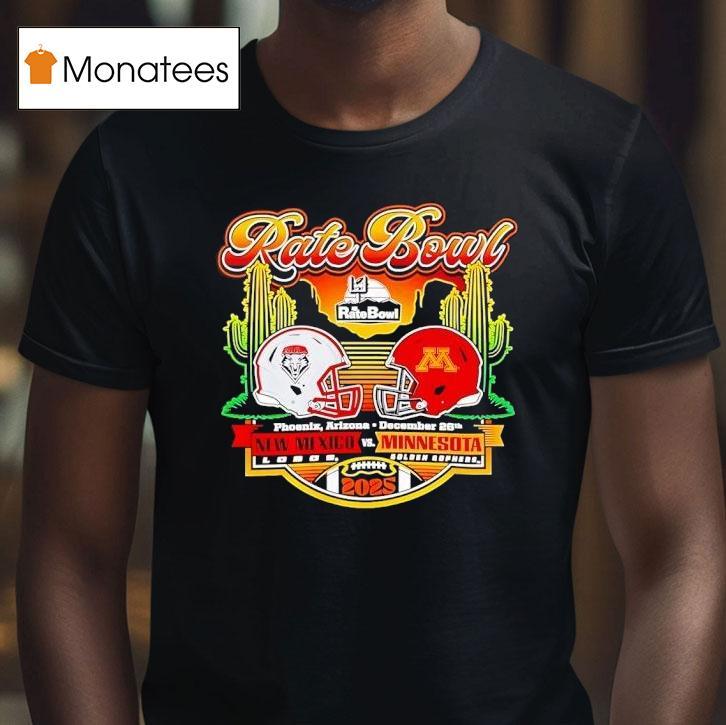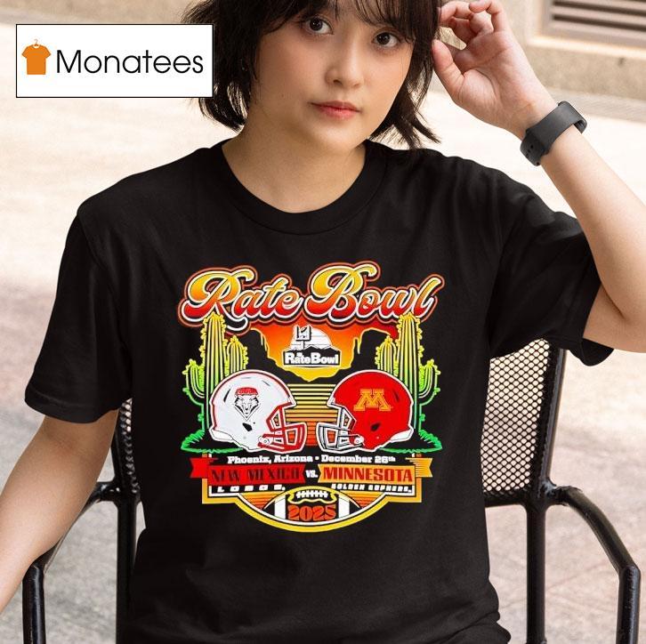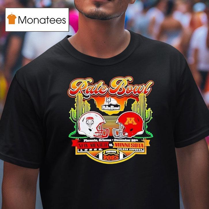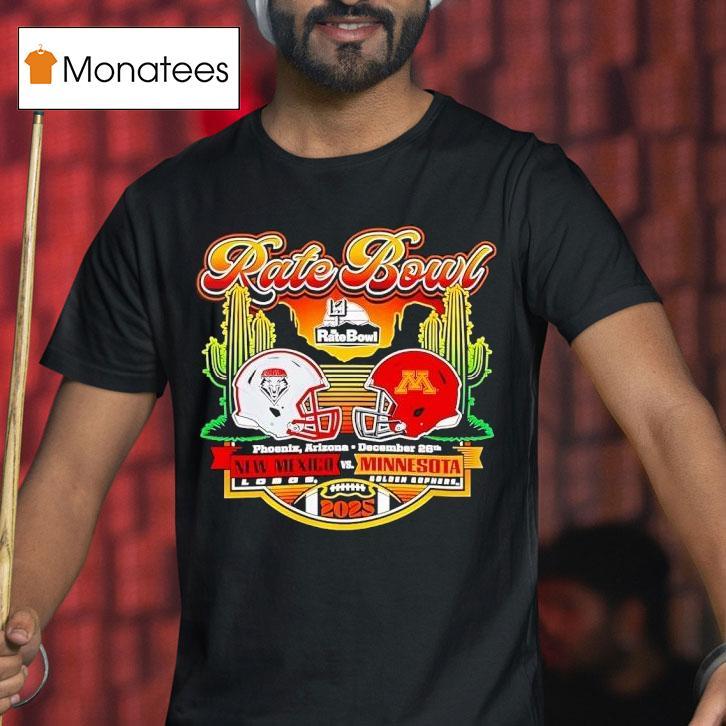 Elevate your casual wardrobe with Rate Bowl 2025 New Mexico Lobos Vs Minnesota Golden Gophers Horizon Matchup Shirt, get ready for an electrifying college football showdown as the New Mexico Lobos take on the Minnesota Golden Gophers in the highly anticipated 2025 Rate Bowl. Fans can show their team pride and support this horizon matchup with the must-have New Mexico Lobos Vs Minnesota Golden Gophers Horizon Matchup Shirt.