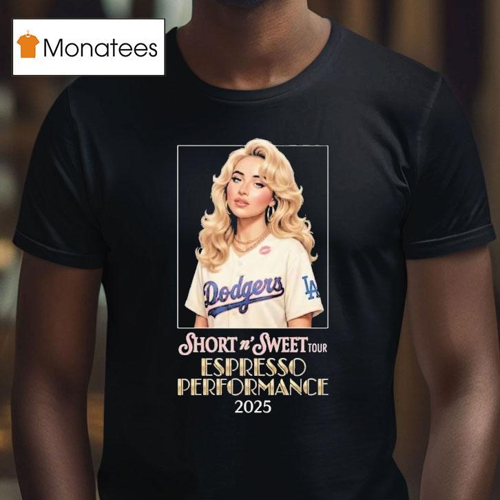 Your style, your way with Sabrina Carpenter X Los Angeles Dodgers Short N Sweet Tour 2025 Espresso Performance On Stage At Crypto Arena November 22 Shirt, get ready, Los Angeles Dodgers fans and Sabrina Carpenter lovers, because the Short N Sweet Tour is coming to town in 2025! Brace yourself for a high-energy performance by Sabrina Carpenter at the Crypto Arena on November 22, and don’t forget to grab your exclusive espresso-themed tour shirt!