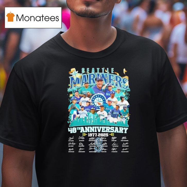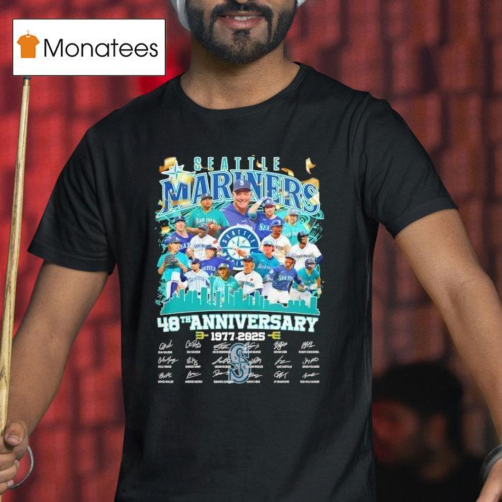 Uncomplicated style choice with Seattle Mariners 48th Anniversary 1977-2025 Signatures Shirt, as the Seattle Mariners celebrate their 48th anniversary since their founding in 1977, fans can commemorate the occasion with the limited edition Seattle Mariners 48th Anniversary 1977-2025 Signatures Shirt. Featuring the signatures of players past and present, this shirt is a must-have for any true Mariners fan.
