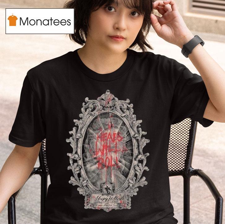 Chic simplicity, maximum comfort with Sleepy Hollow Heads Will Roll Mirror Blood Shirt, as the moon casts an eerie glow over Sleepy Hollow, the town’s residents shudder at the thought of the Headless Horseman and his cursed land. But for those brave enough to venture into the forest, they may find a mysterious mirror, a blood-stained shirt, and a chilling reminder that heads will roll.