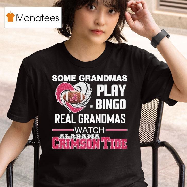 Simple style, bold impact with Some Grandmas Play Bingo Real Grandmas Watch Alabama Crimson Tide Diamond Heart Shirt, grandmas come in all shapes and sizes, but they all share the common bond of love and care. While some grandmas enjoy playing bingo, real grandmas know the true meaning of loyalty and support, which is why they proudly sport their Alabama Crimson Tide Diamond Heart Shirt.