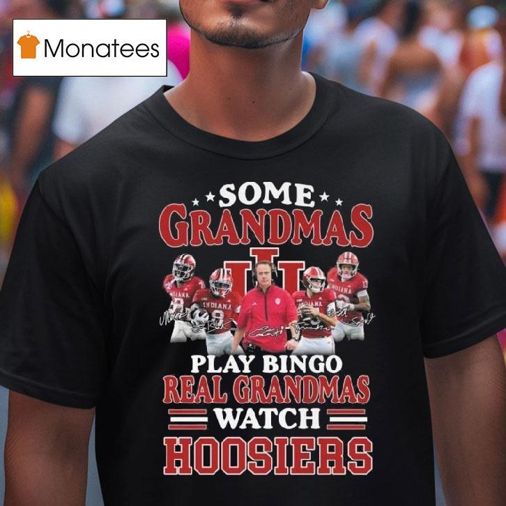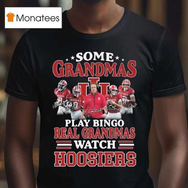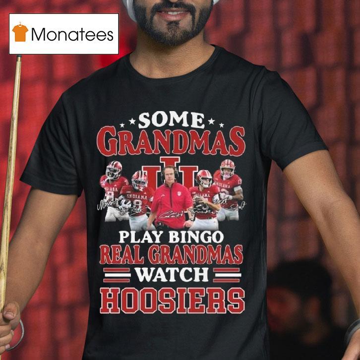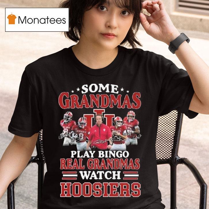 Classic tee, modern vibes with Some Grandmas Play Bingo Real Grandmas Watch Indiana Hoosiers Players Signatures 2025 Shirt, grandmas can be known for many things, from baking delicious treats to playing bingo with their friends. But not all grandmas fit the traditional mold. In fact, some grandmas have a unique love for the Indiana Hoosiers and proudly sport their 2025 Shirt adorned with players’ signatures.