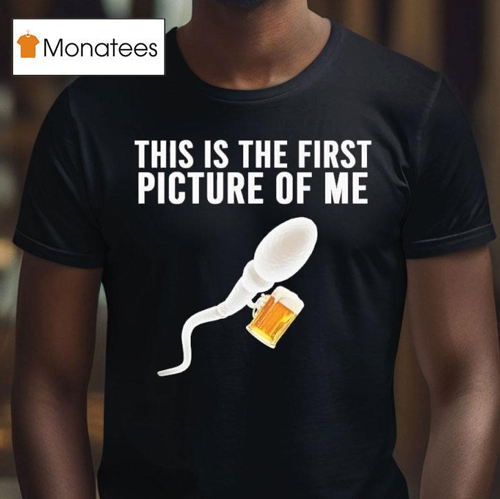 Wardrobe must-have with Sperm Cell Holding A Beer This Is The First Picture Of Me Shirt, “Unconventional, yet intriguing, a sperm cell holding a beer. Even more so, it’s proudly displayed on a shirt, making a bold statement. This is the first picture of me, a unique and humorous way to show off one’s origins. Cheers to that!”