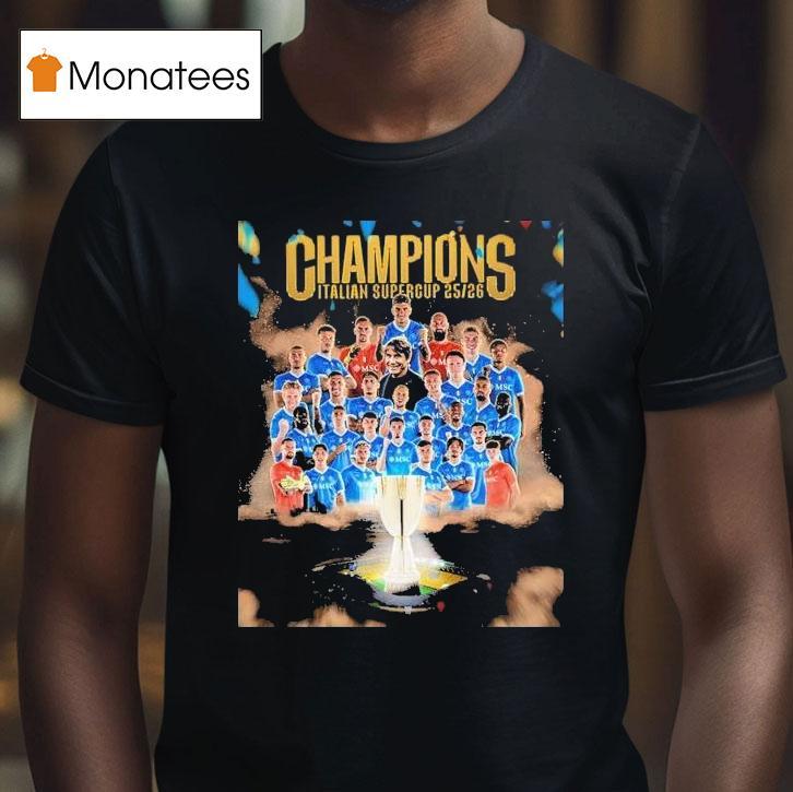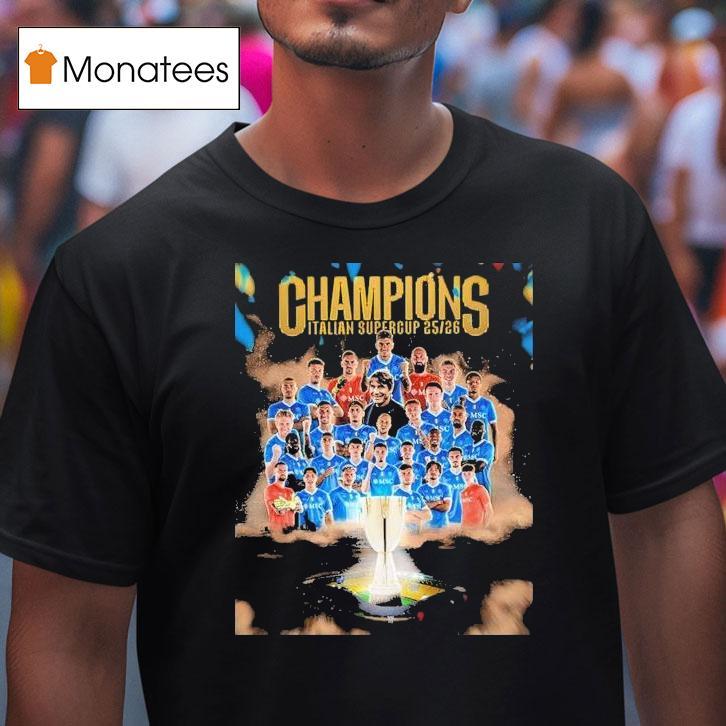 Trendy, timeless tee with Ssc Napoli Are The Italian Super Cup 2025 2026 Champions Serie A Shirt, in the year 2025 and 2026, Ssc Napoli dominated Italian football as they were crowned champions of both the Italian Super Cup and Serie A. With their skills and determination, they proudly wore the coveted Serie A shirt as a symbol of their triumphs on the field.