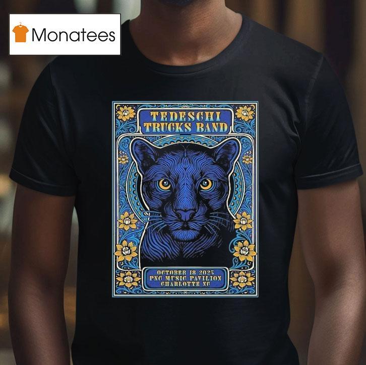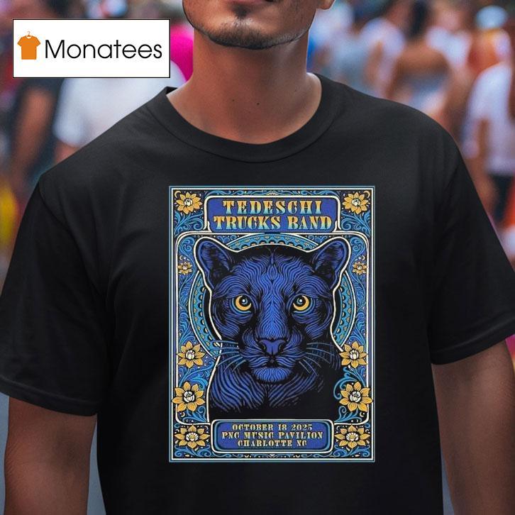 Trendy, timeless tee with Tedeschi Trucks Band Charlotte North Carolina 2025 Venue At Png Music Pavilion On October 18 Panther Shirt, get ready for a musical experience like no other as the Tedeschi Trucks Band takes over the PNC Music Pavilion in Charlotte, North Carolina in 2025. Fans eagerly await the October 18th show, donning their Panther shirts in anticipation of an unforgettable night of soulful blues and rock.