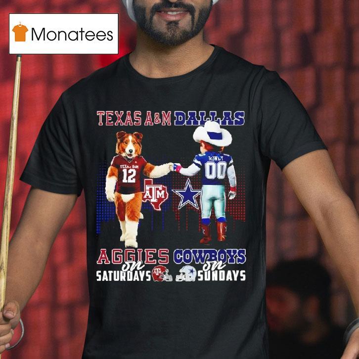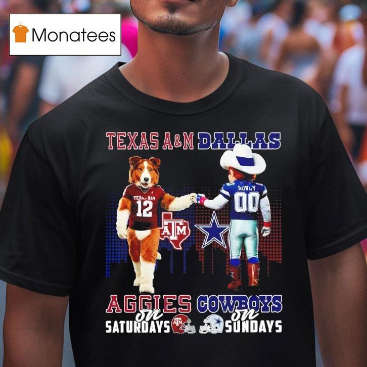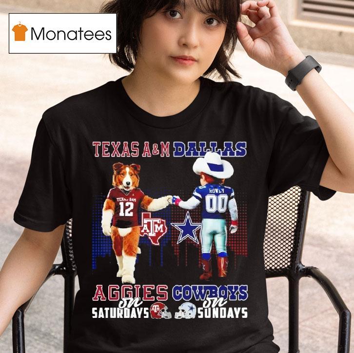 Simple style, big impact with Texas Am Aggies On Saturdays X Dallas Cowboys On Sundays Mascot Shirt, get ready to show off your team spirit with the ultimate shirt for Texas A&M Aggies fans and Dallas Cowboys fans! This versatile shirt features the beloved mascots of both teams, perfect for game day Saturdays and Sundays. Show your love for both teams with this must-have piece of fan gear!
