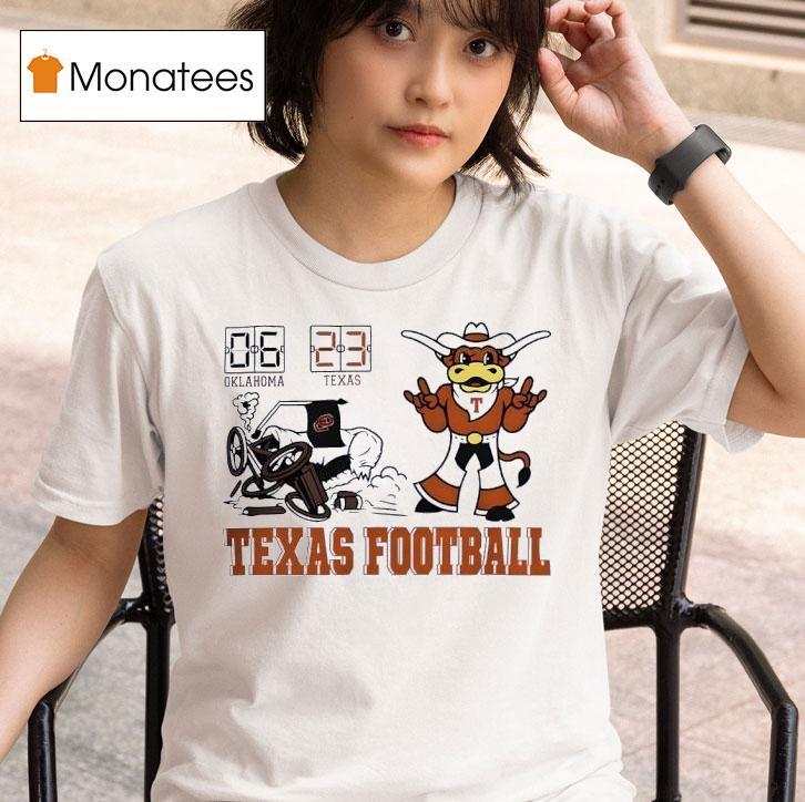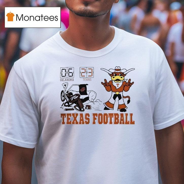 The perfect blank canvas with Texas Longhorns Vs Oklahoma Sooners 2025 Score 23-6 Shirt, in the highly anticipated matchup between the Texas Longhorns and the Oklahoma Sooners in 2025, it was a dominating victory for the Longhorns with a final score of 23-6. Fans adorned their Texas Longhorns Vs Oklahoma Sooners 2025 Score 23-6 shirts, celebrating their team’s triumph over their fierce rivals.