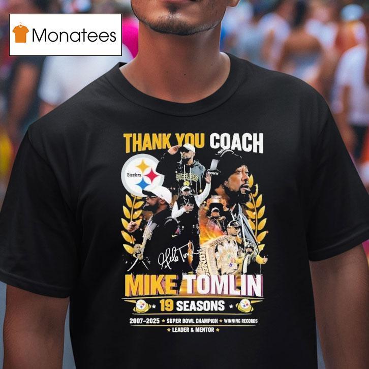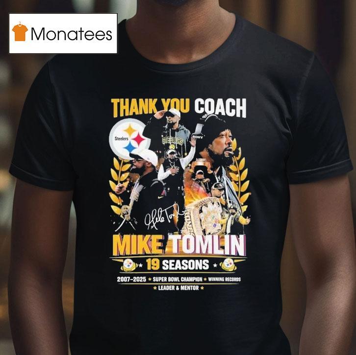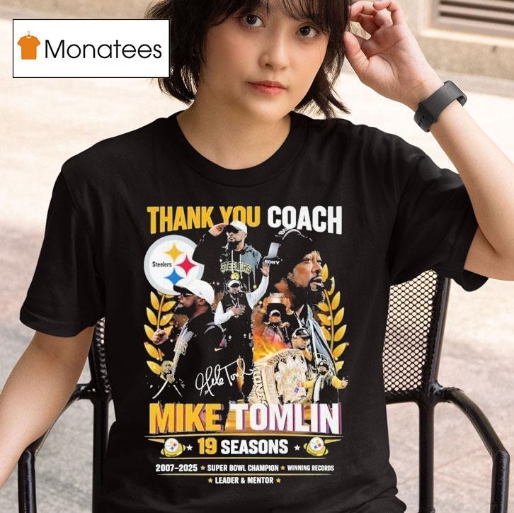 Wearable comfort, endless style with Thank You Coach Mike Tomlin Coach Pittsburgh Slers 19 Seasons 2007 2025 Shirt, “Coach Mike Tomlin has been an integral part of the Pittsburgh Steelers for an impressive 19 seasons, leading the team to success since 2007. As a token of gratitude, fans proudly wear the “Thank You Coach Mike Tomlin” shirt, honoring his dedication and impact on the team.”