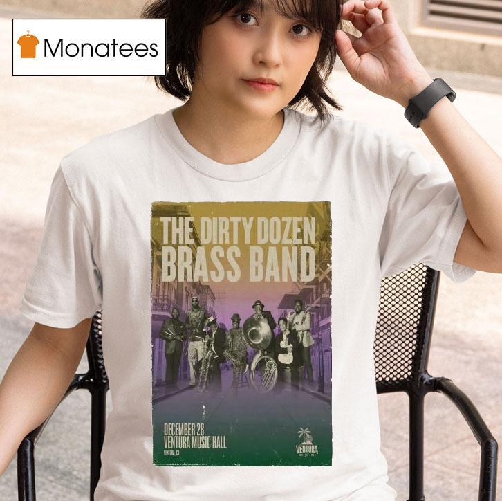 Simple style, maximum impact with The Dirty Dozen Brass Band In Ventura Ca On Dec 28 2025 Shirt, get ready to groove with The Dirty Dozen Brass Band as they bring their iconic New Orleans sound to Ventura, CA on December 28, 2025. Don’t miss your chance to snag the limited edition concert shirt featuring the date and location of this unforgettable performance.