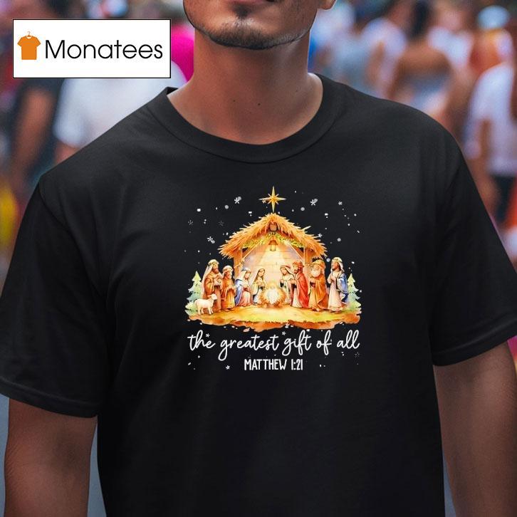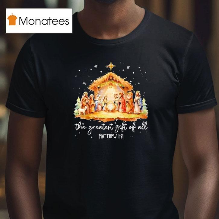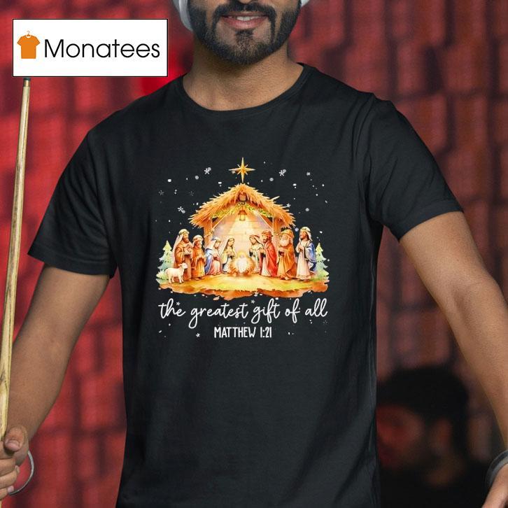 Wearable confidence booster with The Greatest Gift For All Matthew 1 21 Christmas Nativity Jesus Christian Shirt, welcome to the holiday season, where the greatest gift for all is celebrated. As we reflect on the true meaning of Christmas, let us remember the birth of Jesus Christ through the Christmas Nativity. Embrace your Christian faith with the perfect symbol of devotion, the Matthew 1:21 Christian shirt.