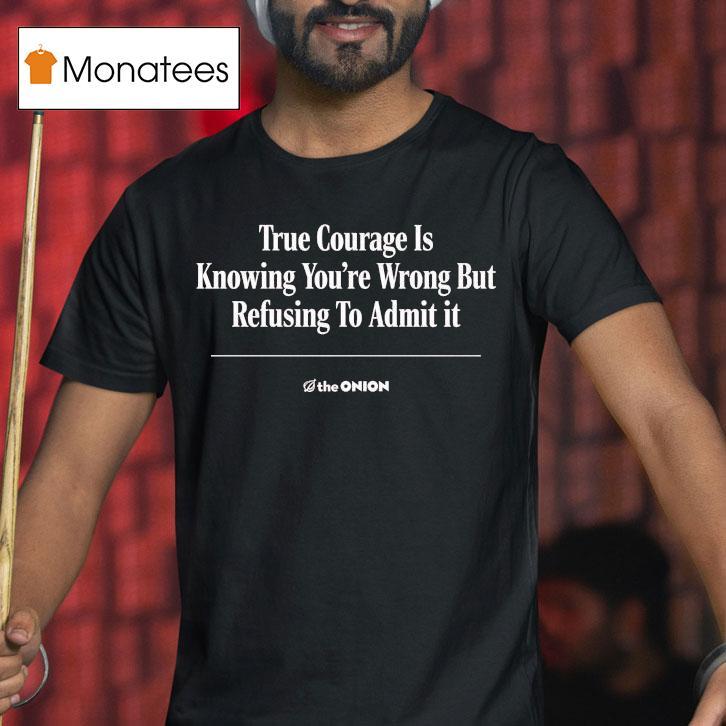 Classic look, contemporary feel with The Onion True Courage Is Knowing You’re Wrong But Refusing To Admit It Shirt, “The Onion True Courage Is Knowing You’re Wrong But Refusing To Admit It Shirt is not just a clever play on words, it’s a bold statement of defiance. By proudly donning this shirt, you declare your willingness to stand by your beliefs, even if it means admitting to being wrong.”