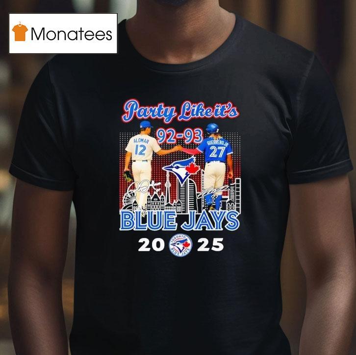 Casual flair, all occasions with Toronto Blue Jays Roberto Alomar And Vladimir Guerrero Jr. Party Like It’s 92-93 2025 Signatures Shirt, the Toronto Blue Jays have always been a powerhouse in the MLB, but with the recent acquisition of Roberto Alomar and the rise of Vladimir Guerrero Jr., fans are starting to feel reminiscent of the iconic 92-93 season. You can now commemorate this feeling with the exclusive “Party Like It’s 92-93 2025 Signatures Shirt”.