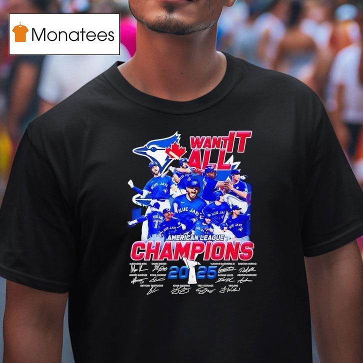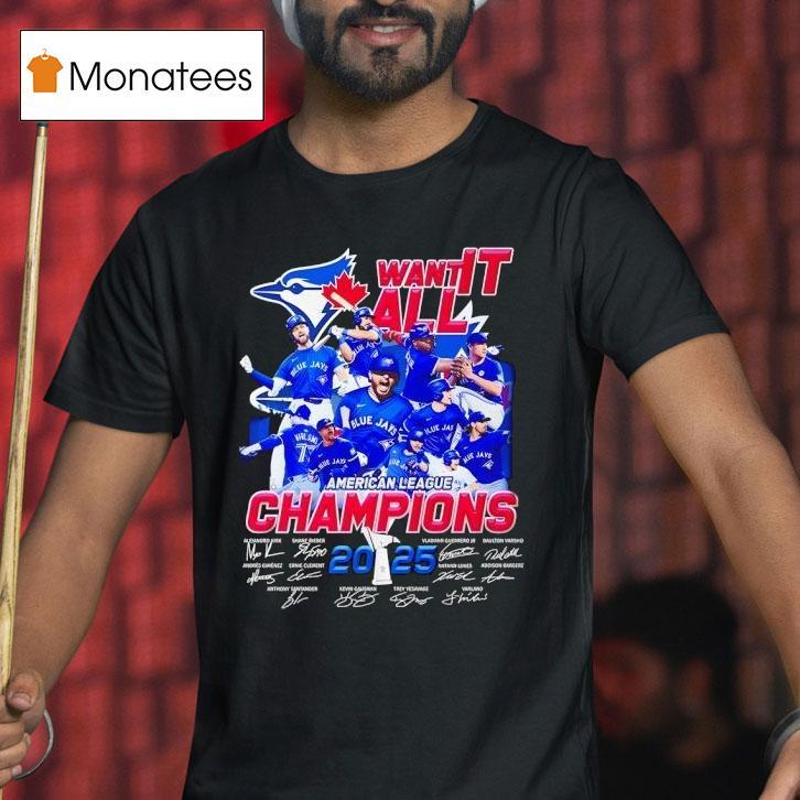 Timeless appeal, everyday wear with Toronto Blue Jays Want It All American League Champions 2025 Signatures Shirt, get ready to show your support for the ultimate goal of the Toronto Blue Jays: becoming American League Champions in 2025. With the exclusive Signatures Shirt, you can proudly display your dedication to the team and their determination to achieve greatness. Let’s go Blue Jays!