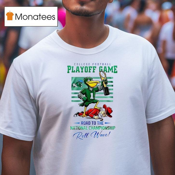Casual comfort, chic look with Tulane Green Wave 2025 26 Cfp Road To The National Championship Roll Wave Mascot Shirt, get ready, college football fans, because the Tulane Green Wave is on a path to the National Championship in 2025 and 2026! With the iconic Roll Wave mascot leading the way, show your support with the limited edition CFP Road to the National Championship t-shirt. Let’s ride the wave to victory!
