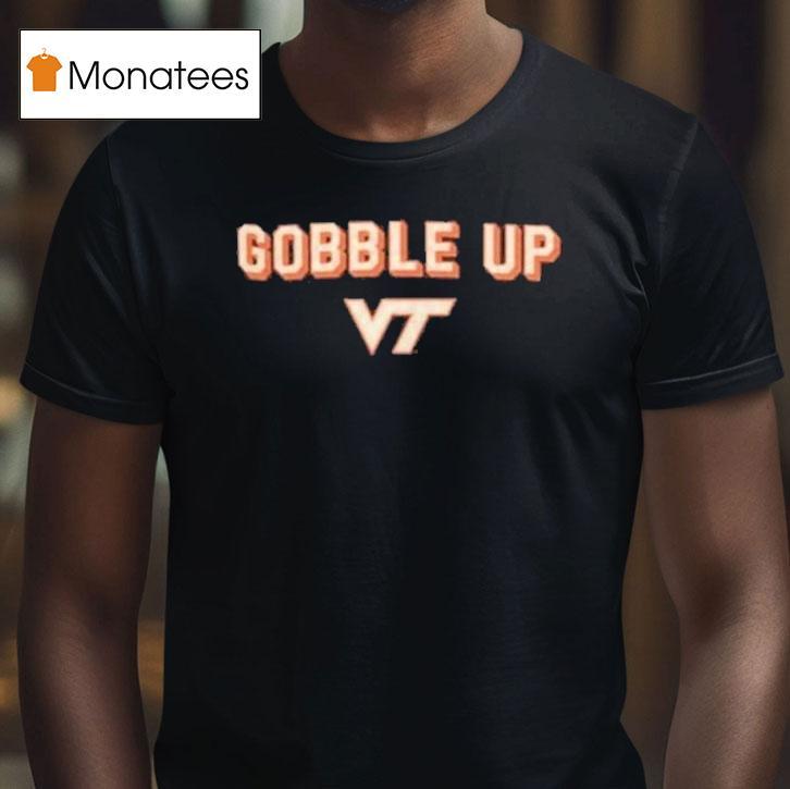Effortless charm, all occasions with Virginia Tech Hokies Gobble Up Shirt, get ready to root for your favorite team in style with the Virginia Tech Hokies Gobble Up Shirt. Show your school spirit and support the Hokies while staying comfortable and trendy. Grab your shirt and join the sea of maroon and orange at the next game!