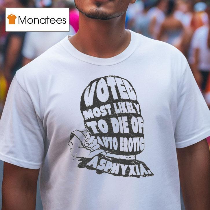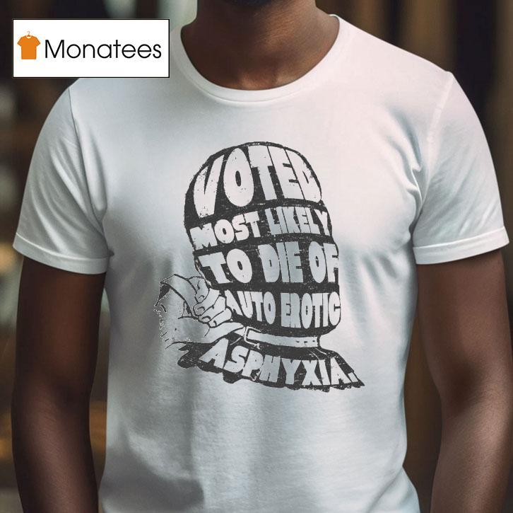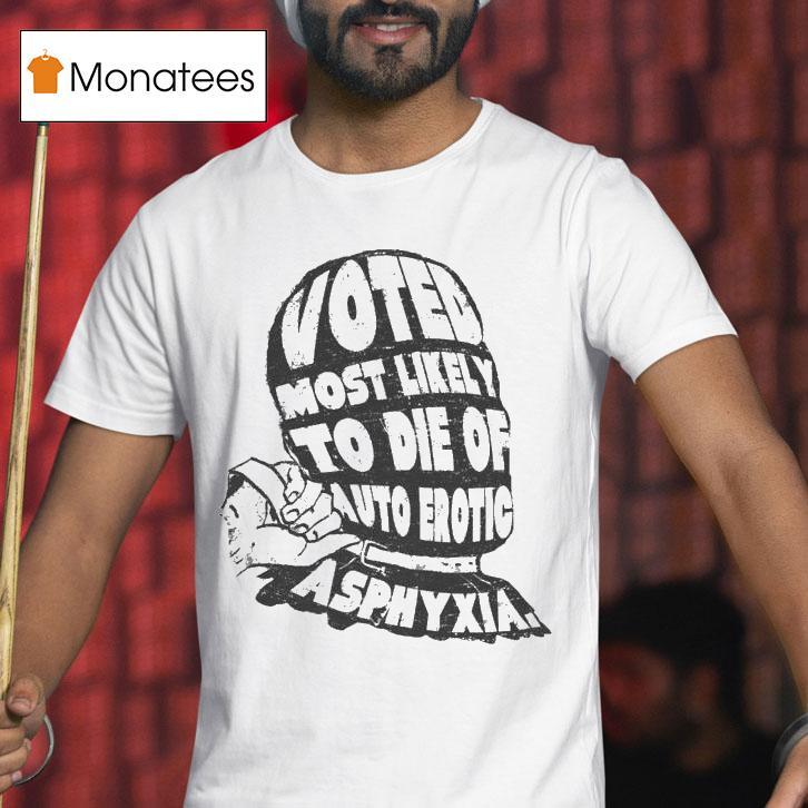 Soft, breathable, and stylish with Voted Most Likely To Die Of Auto Erotic Asphyxia Shirt, get ready to make a statement with the Voted Most Likely To Die Of Auto Erotic Asphyxia Shirt. With a bold design and provocative message, this shirt is sure to turn heads and spark conversations. Show off your sense of humor and unique style with this edgy and eye-catching top.