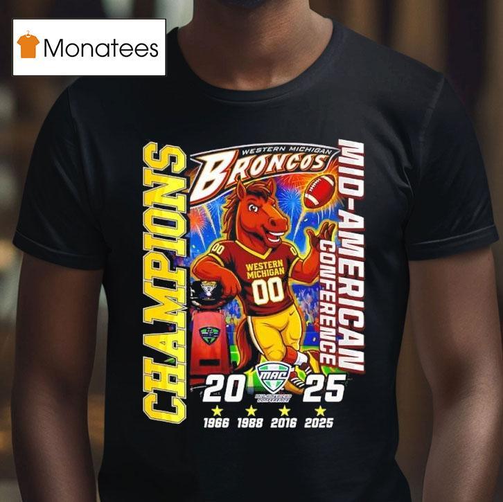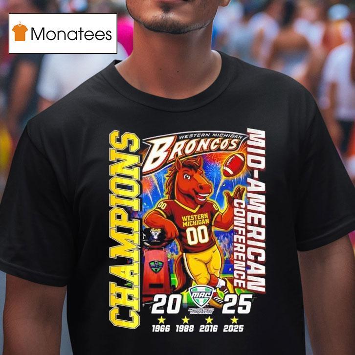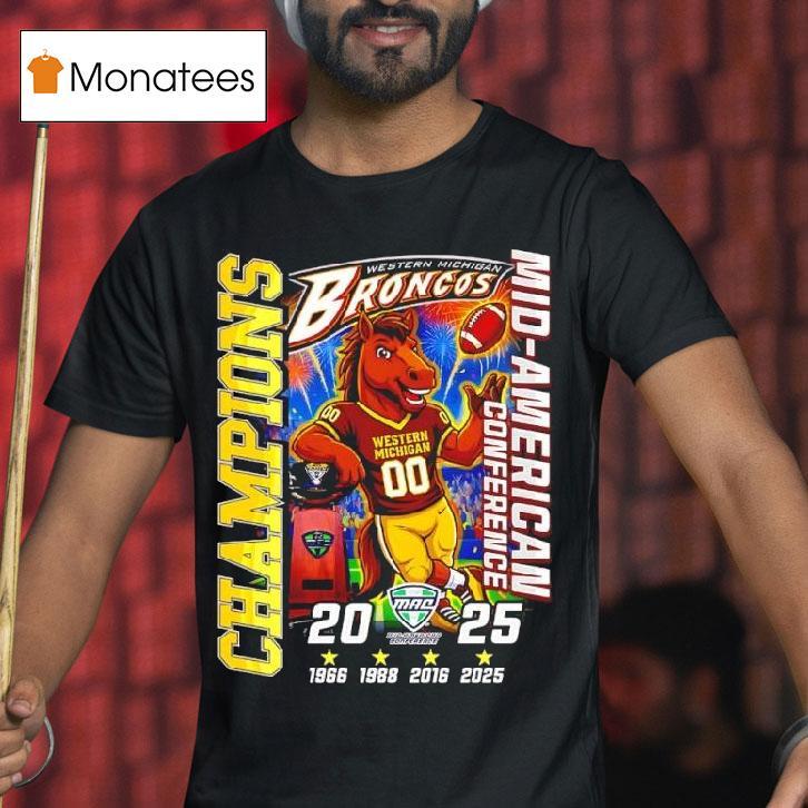 Soft, breathable, and stylish with Western Michigan Broncos 2025 Mid-american Conference Champions Mascot Years Shirt, get ready to show off your pride as a Western Michigan Broncos fan with the limited edition 2025 Mid-American Conference Champions Mascot Years shirt. Celebrate the team’s success as they dominate the competition and secure their spot as conference champions, making history for the Broncos in the upcoming season.