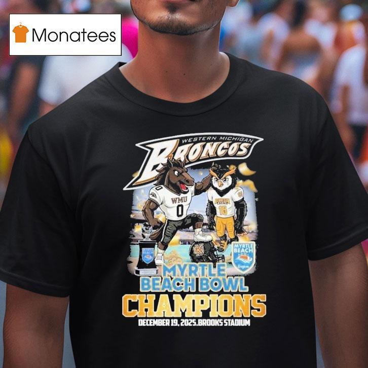 Casual cool, anytime wear with Western Michigan Broncos Beat Kennesaw State Owls Myrtle Beach Bowl Champions 2025 Shirt, in a thrilling matchup at the Myrtle Beach Bowl in 2025, the Western Michigan Broncos took down the Kennesaw State Owls to claim the coveted championship title. Fans proudly donned the commemorative “Myrtle Beach Bowl Champions 2025” shirts, celebrating the Broncos’ hard-fought victory over their opponents.