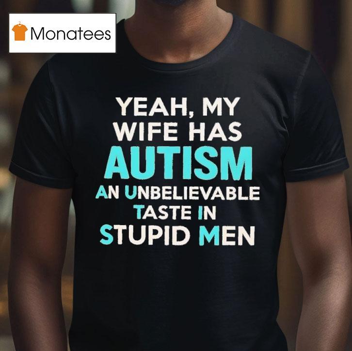 Easy-going style staple with Yeah My Wife Has Autism An Unbelievable Taste In Stupid Men Shirt, “Love knows no bounds, and for some, it comes in unexpected forms. For one husband, his wife’s autism may bring challenges, but her remarkable taste in humor shines through with her infamous “Yeah, My Wife Has Autism, An Unbelievable Taste In Stupid Men” shirt. This is their story.”