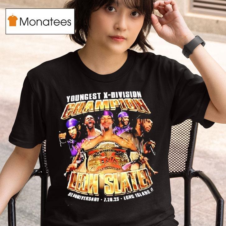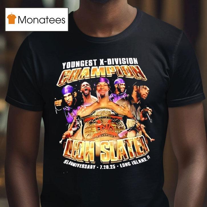 Simple style, bold impact with Youngest X-division Champion Leon Slater Slammiversary Tna 7 20 2025 Shirt, on July 20, 2025, history was made at Slammiversary TNA as the youngest X-division champion, Leon Slater, claimed the title at just 20 years old. The future looks bright for this talented wrestler, and fans can now celebrate with a commemorative shirt.